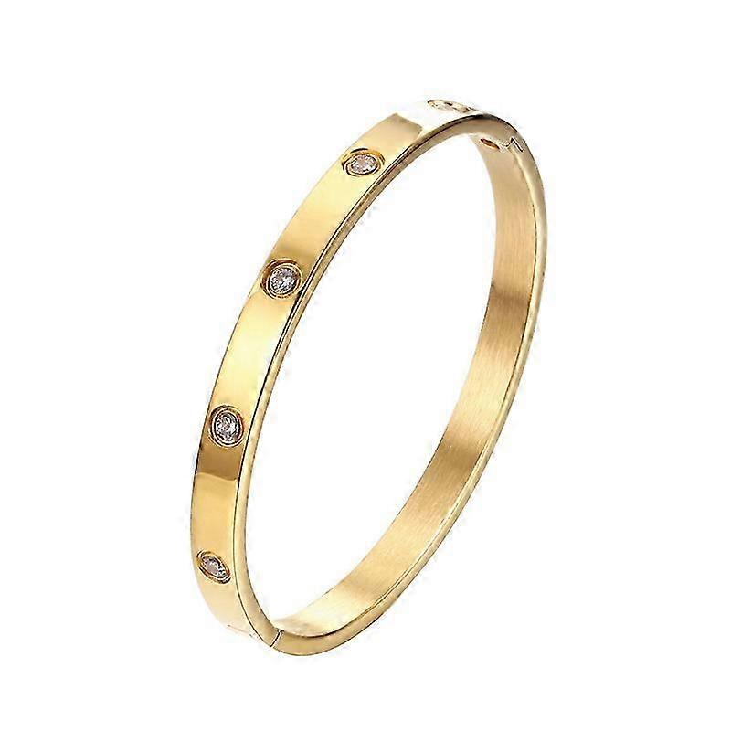 Style:Oval-Gold Material:Metal The love bracelet inside diameter of 58-64cm, suitable for most wrist sizes. Please refer to photo shots and style name on listing to ascertain which size and color you are before purchasing. The sparkle stones have been perfectly set on the bangle which fully illustrates love makes you more beautiful. Perfect everyday accessory to add a little style to your outfit. Made from hypo-allergenic surgical grade 316L stainless steel for long life. Moreover bright and shiny with smooth edges all around, this elegant bangle is very cute and well made,and you will get many compliments and focus when you wear it. More attractive is that this oval bracelet is not too heavy but not too light. Goes with everything and easy to throw into any bracelet stack, or just wear on its own. Its an absolutely simple but classy bracelet. The bangle with hidden clasp is simple and elegant and very easy to get on /off for adults or teens. Insert your index finger and pull the top part and use your thumb to push the bottom part. For a better understanding of the usage, the user manual with exact details would be attached in the package. This beautiful bracelet comes with a pretty gift box and ready for giving . It is a great gift idea for your best friends, sister, wife, girlfriend, daughter, granddaughter, niece, daughter in law, mother and so on. Its a perfect gift for Mothers day, Birthday, Christmas, Graduation, Thanks giving ,Valentine's day or just because. Beautiful and perfect for layering.