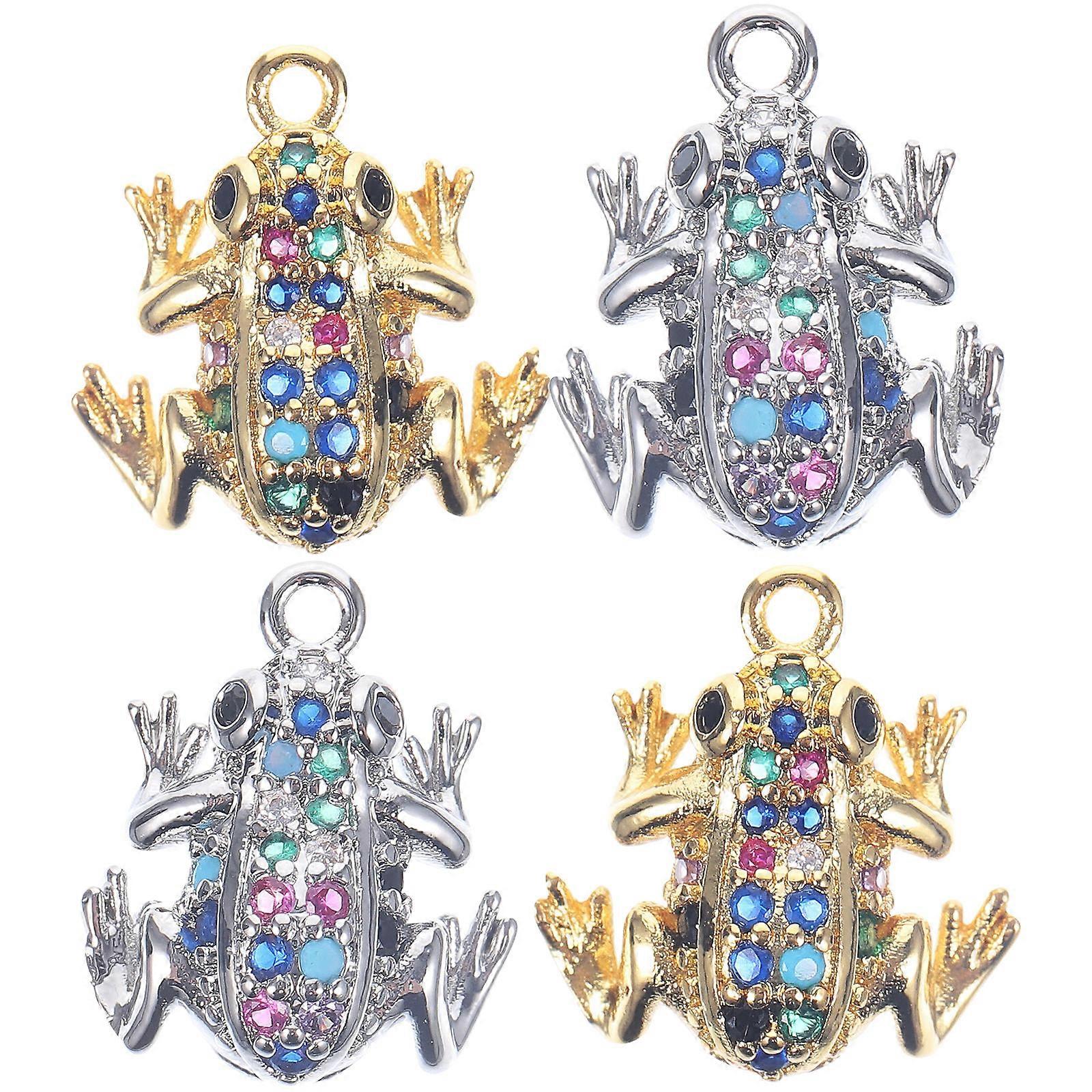 4pcs Frog Charms for Jewelry Making DIY Pendant Accessories in Gold and Platinum, Eye Catching Ornaments for Necklaces and Bracelets
