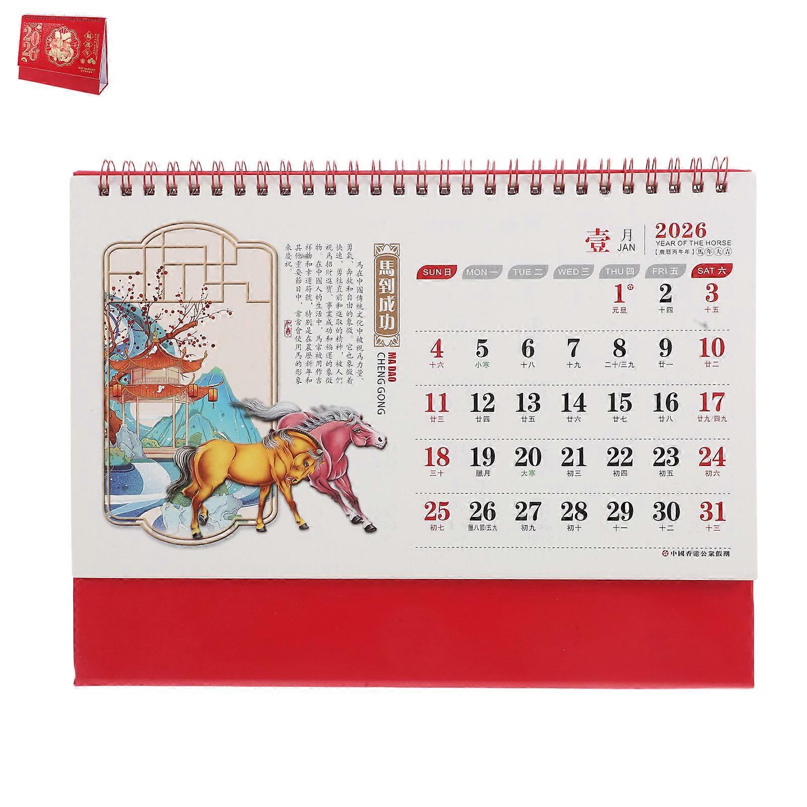 Standing Flip Desk Calendar with Gold Accents, Traditional Chinese Design for Office and Home Decoration