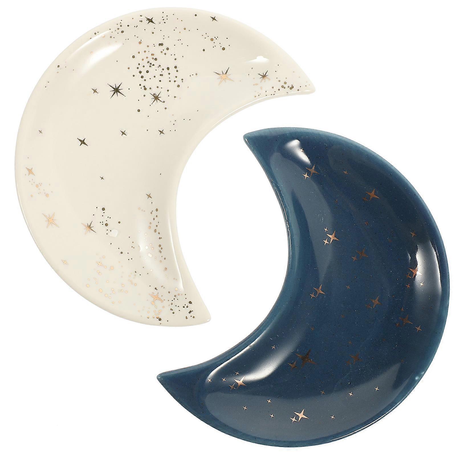 Ceramic Moon Jewelry Dish with Gold Accents, Elegant Trinket Tray for Rings, Earrings, Necklaces, and Bracelets, Desktop Organizer for Home or Gift