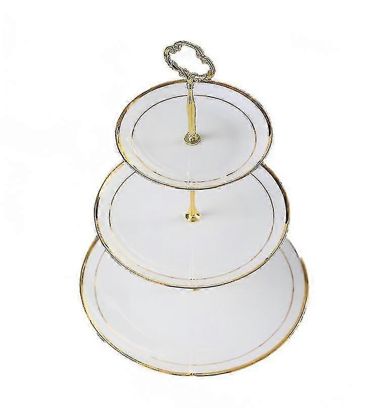 Gold Inlay Bone China Triple Decker Plates Fruit Cake Candy Dish Ceramic Tray Porcelain Tableware De