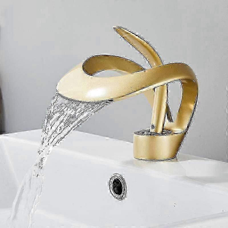 Gold Waterfall Brass Bathroom Faucet,Waterfall Basin Faucet,High-Arc Single Handle Bathroom Faucet With Adjustable Hot And Cold Single Handle Ceramic