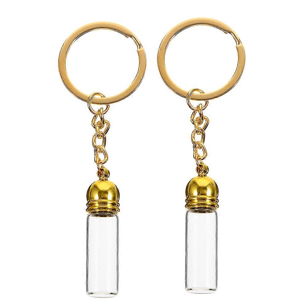 Large Transparent Glass Bottle Keychain with Gold Caps, Multifunctional Perfume Vial Pendant for Essential Oils, Decorative Drift Jar, Stylish Bag
