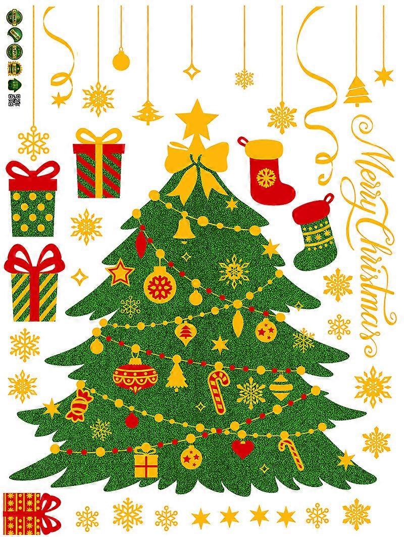 Gold green powder Christmas wall sticker Santa Claus riding a sleigh sticker self-adhesive removable