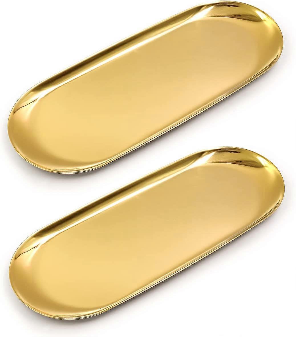 Gold Serving Tray Decorative Ornaments Plate for Dessert Drinks Candles Table Organizers Oval Trays(2pcs, gold)