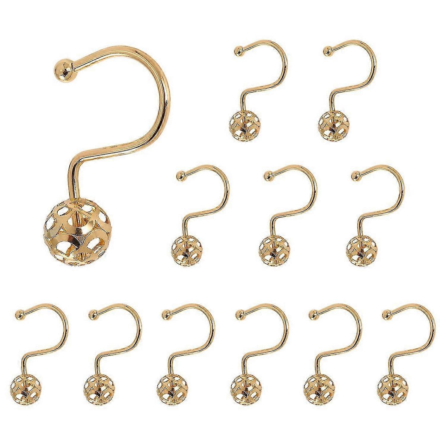 Gold Shower Curtain Hooks Rings,Set of 12 Decorative Shower Curtain Hooks,Metal Rustproof Shower Rin