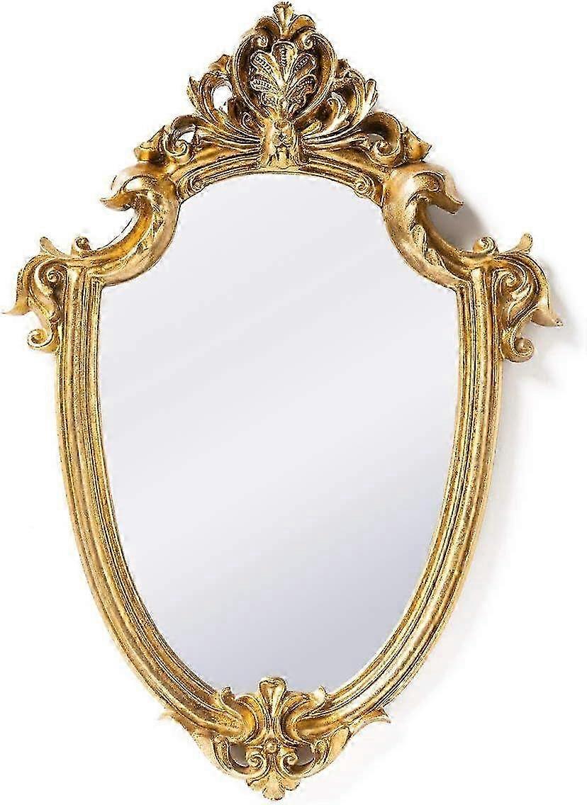 Elegant Vintage Decorative Wall Mirror in Gold Shield Shape - Antique Design for Home Decor and Stylish Accent