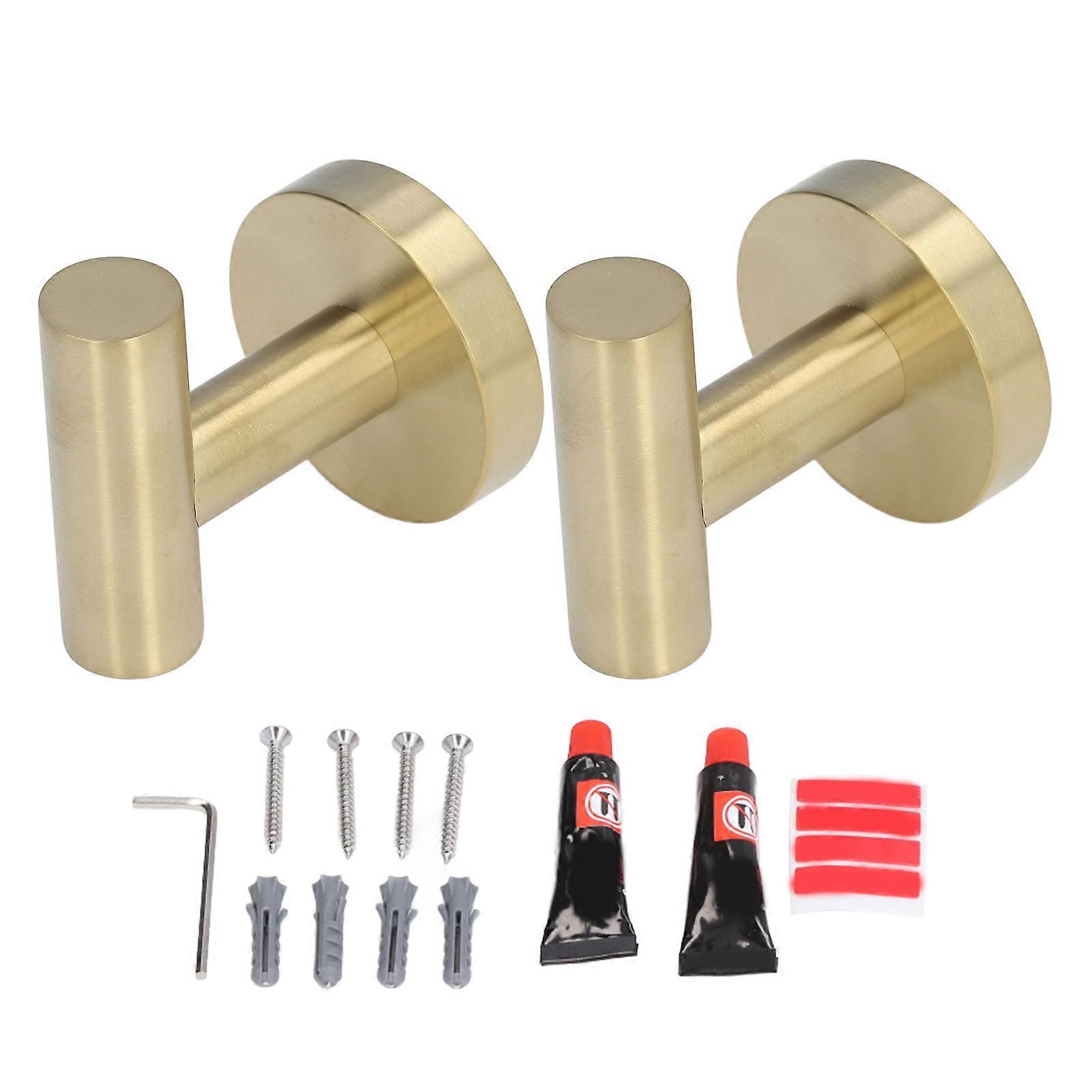 Gold Stainless Steel Bathroom Towel Hooks 2-Pack Round Wall Holders for Robes Coats Hats Clothing Hangers