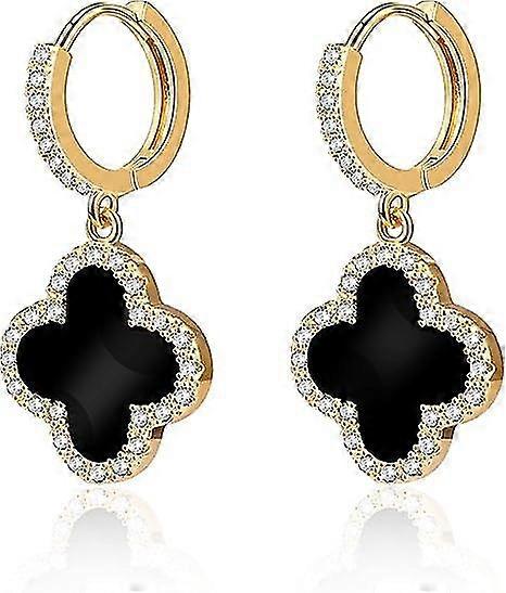 Gold Dangle Earrings, 14k Gold Plated Small Huggie Hoop Earrings With Charms Four-leaf Clover, Dainty Drop Dangle Earrings For Women, Resin Cubic Zirc