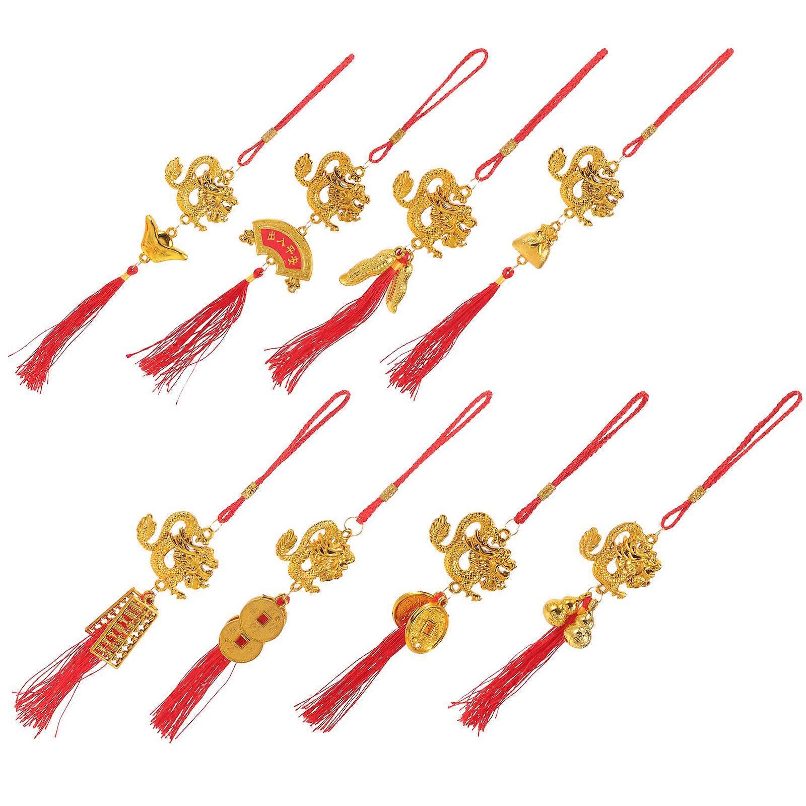 Gold Dragon Tassel Pendants Set of 10 Festive Home Office Bonsai Decorations for Spring Festival Window Door Hanging Lucky Zodiac Ornaments