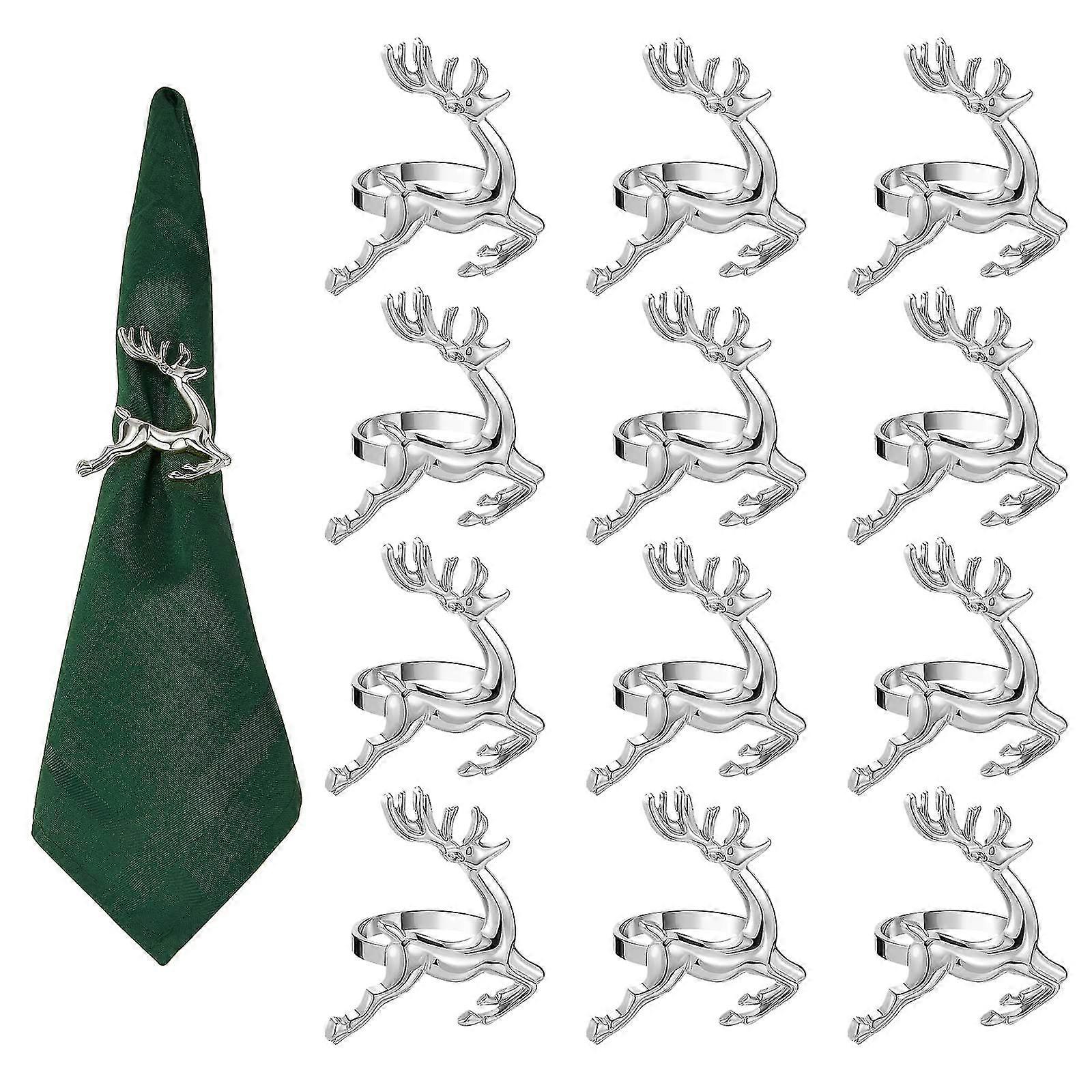 Gold Napkin Rings Set Of 12 - Reindeer Napkin Ring Holders For Family Dinners, Wedding, Outdoor Party, Baby Shower, Dinner Party