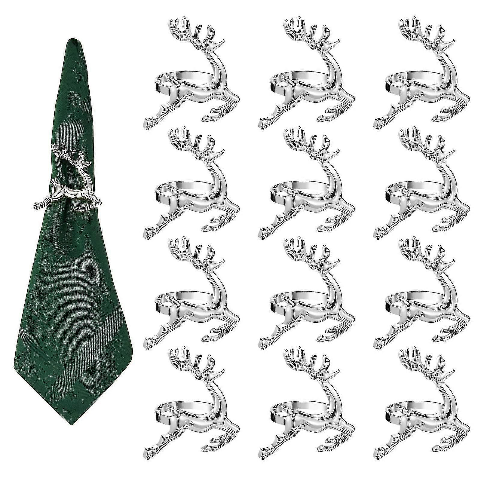 Gold Napkin Rings Set Of 12 - Reindeer Napkin Ring Holders For Family Dinners, Wedding, Outdoor Party, Baby Shower, Dinner Party