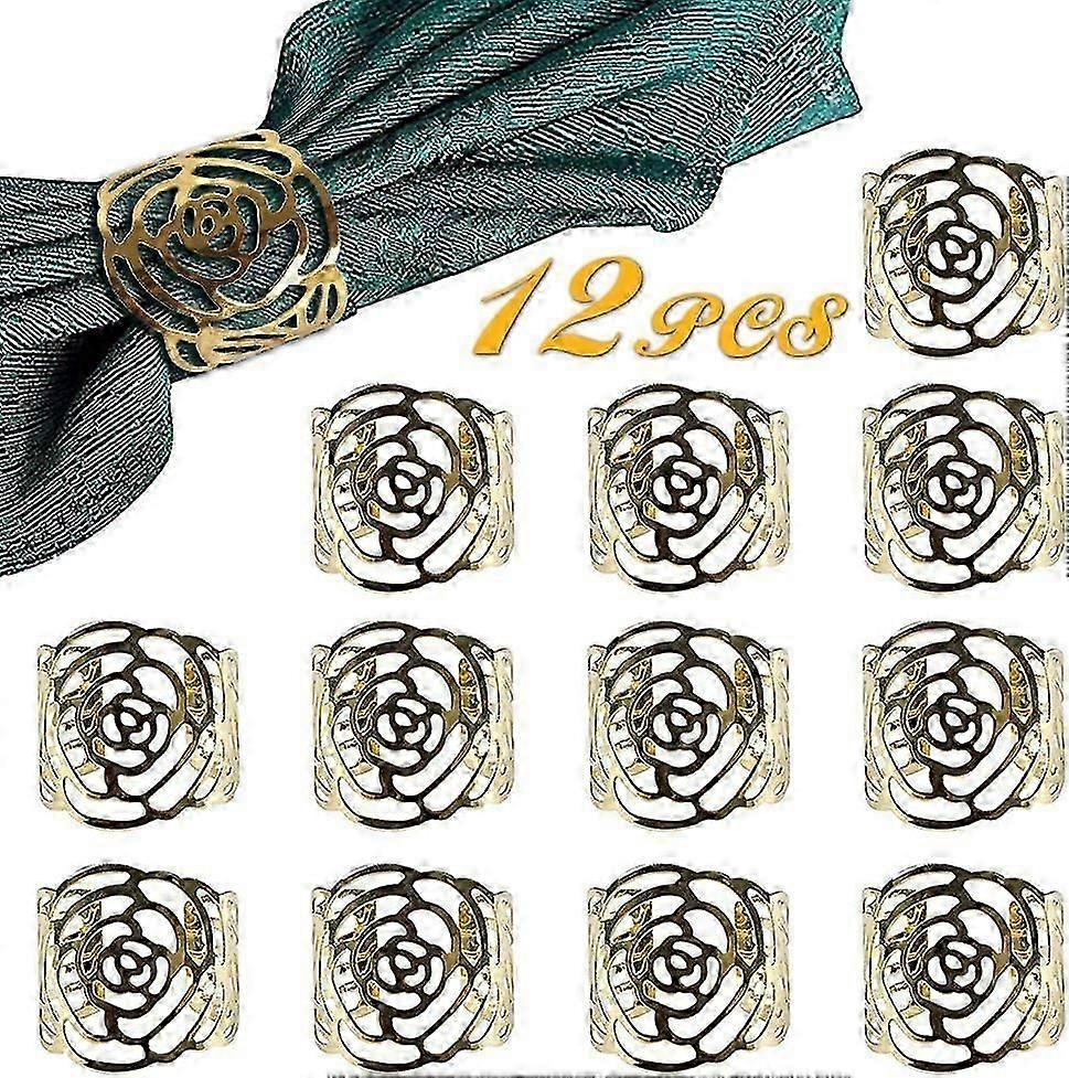 Gold Napkin Rings Set of 12 with Metal Rose Cutouts
