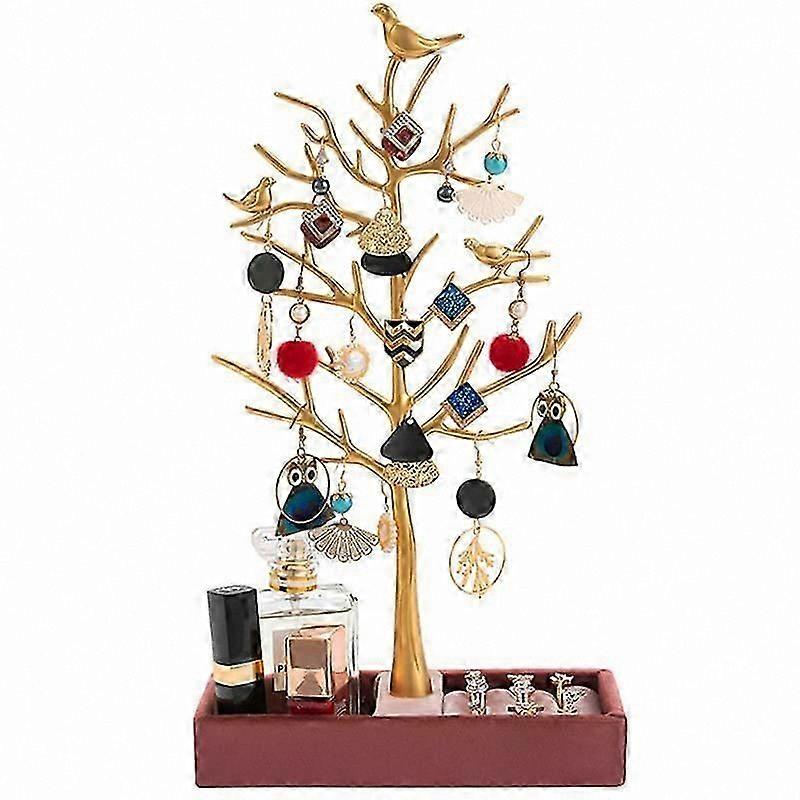 Gold Bird Tree Jewelry Display Stand Holder