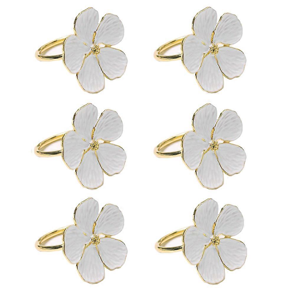 Gold Flower Napkin Rings Set of 6, Holiday White Napkin Rings for Wedding Party Holder Dining Tables Setting Decor and Daily Use