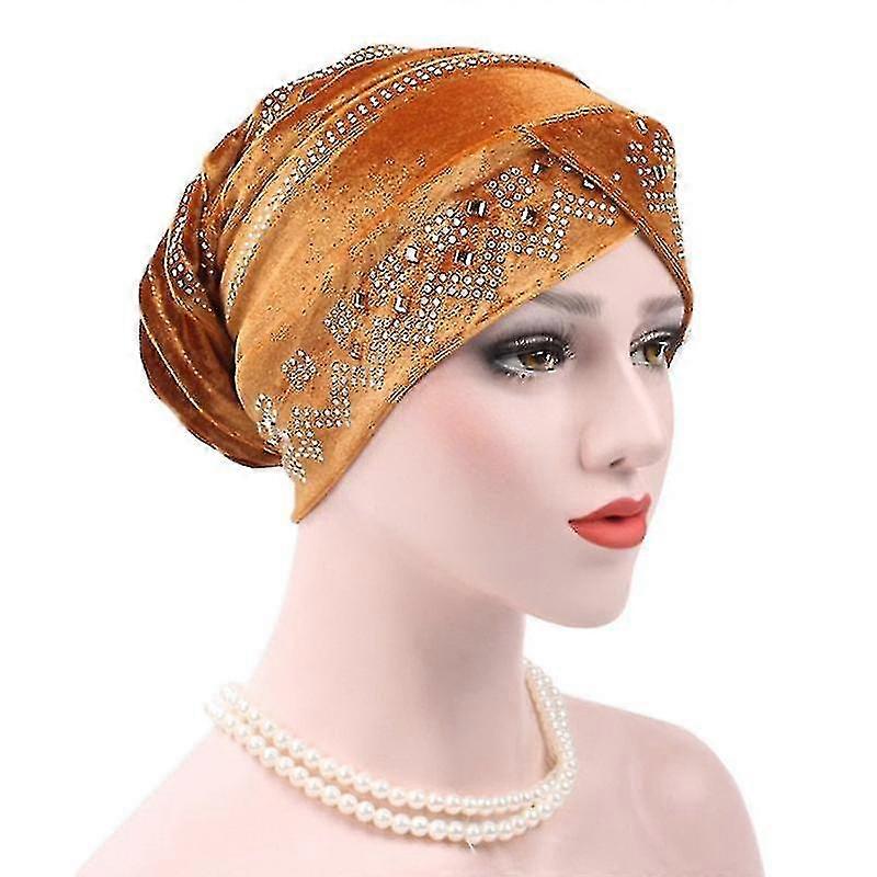 Gold Velvet Inner Hijabs Muslim Turban Caps For Women With Drill Ethnic Islamic