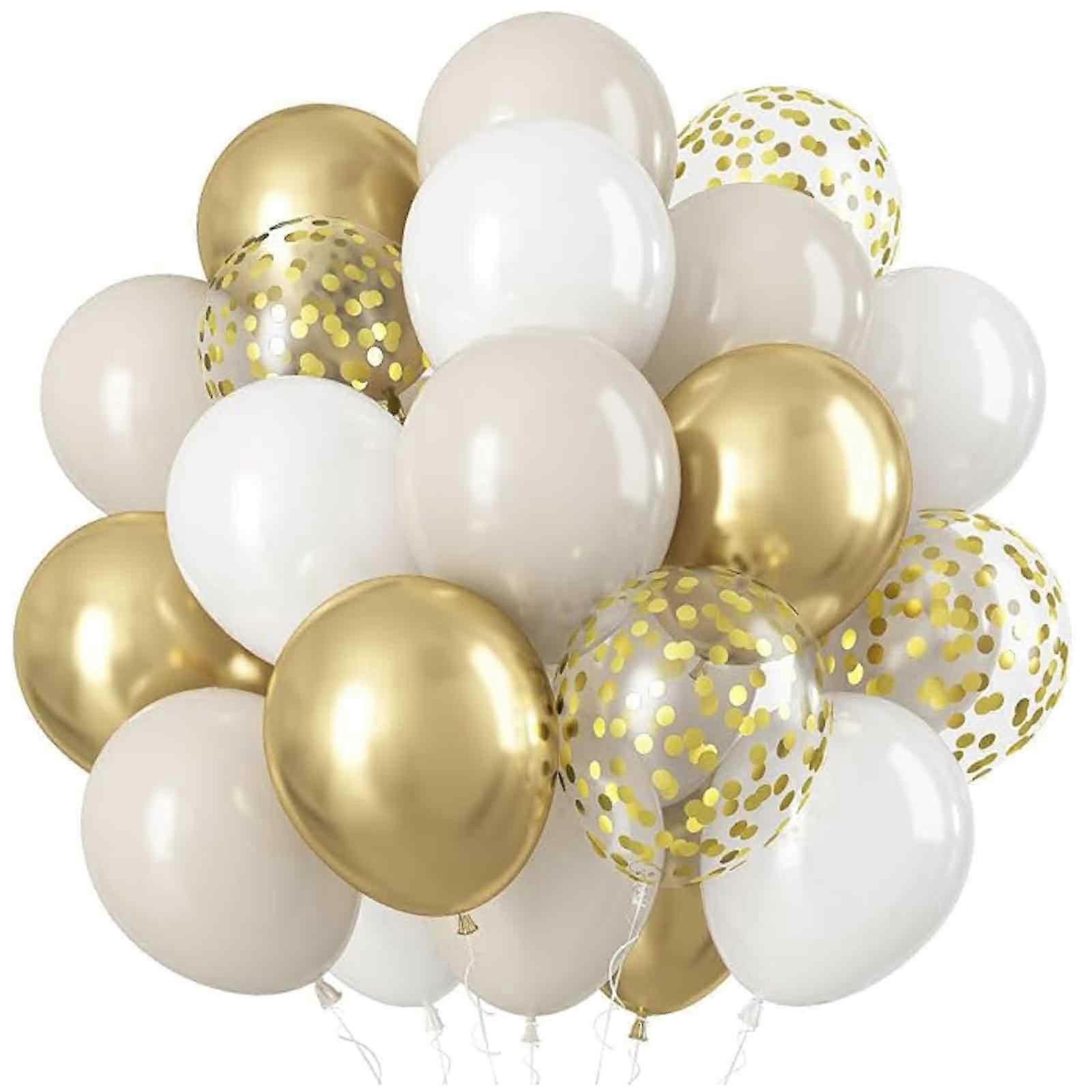 60 gold and white balloons, gold and white helium balloons, white balloons, latex balloon set, metallic gold balloons