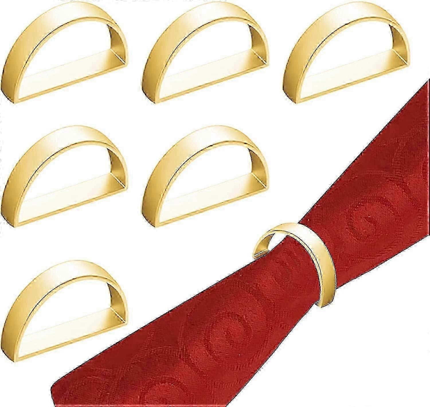 Gold Metal Napkin Rings, 6 Pcs Semicircle D-Shaped Holders for Weddings & Parties
