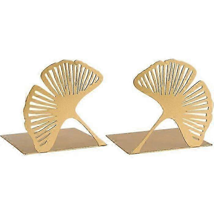 Gold Metal Bookends Set of 2, Decorative Cut-Out Design, Heavy-Duty Book Supports, Ornamental Shelf Ends