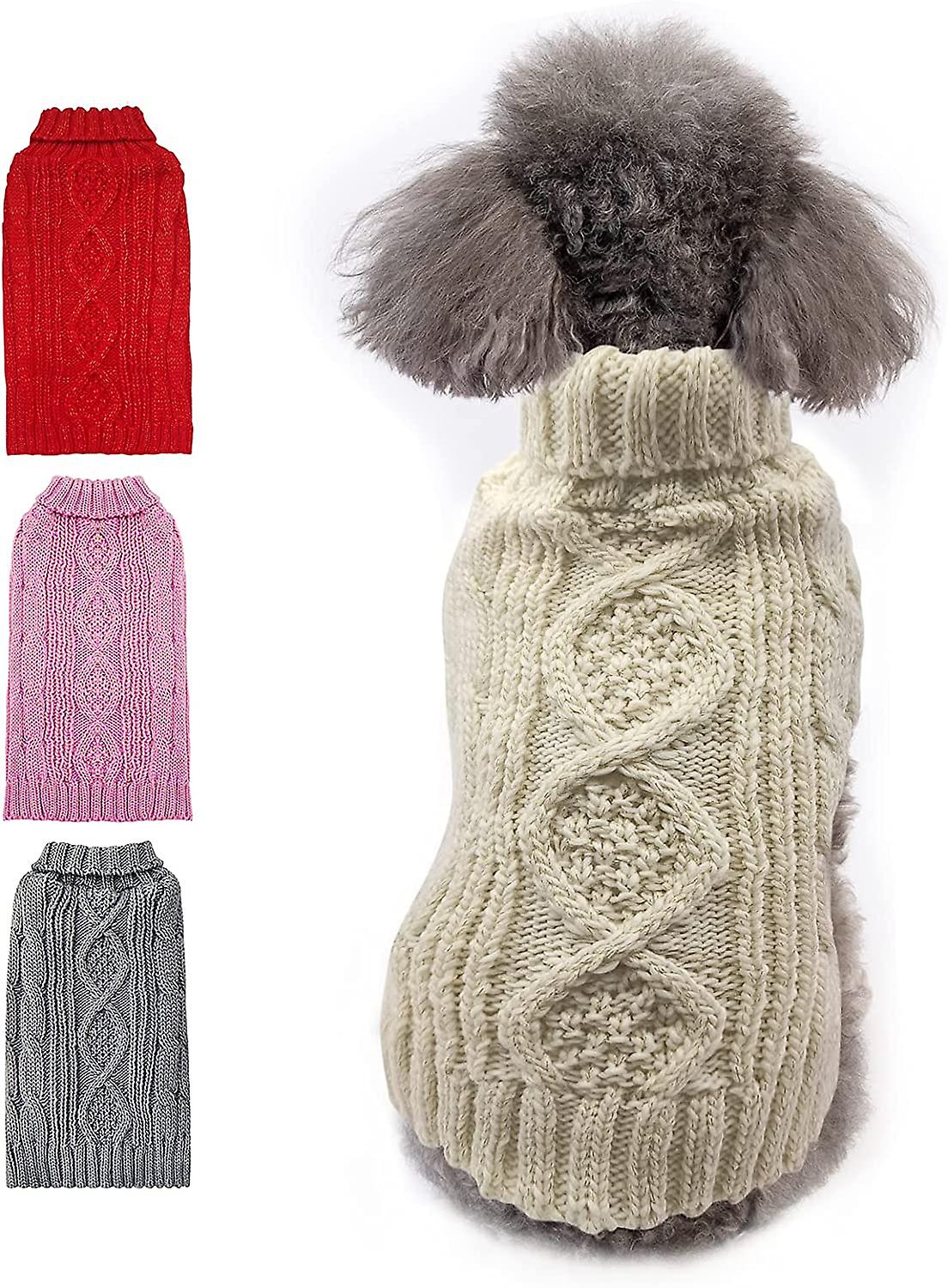 Dog Sweater with Gold Yarn High Collar Dog Rope Knit Dog Sweater for Cold Weather