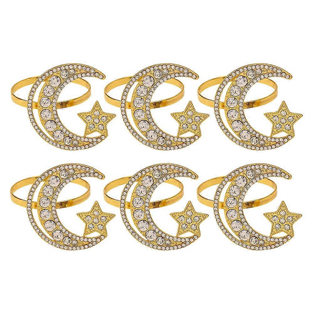 Gold Rhinestone Napkin Rings 6pcs Middle Eastern Style Serviette Holders for Weddings, Banquets & Upscale Table Decor