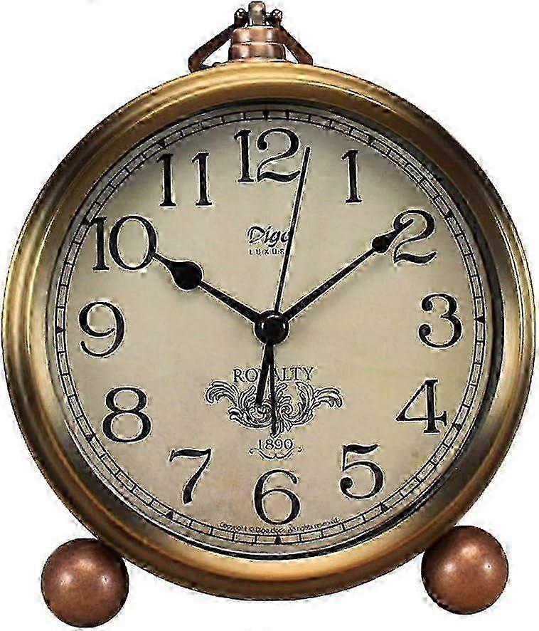 Gold Desk Clock, Retro Silent Desk Alarm Clock Battery Operated Quartz Movement HD Glass Bedroom Living Room Decoration