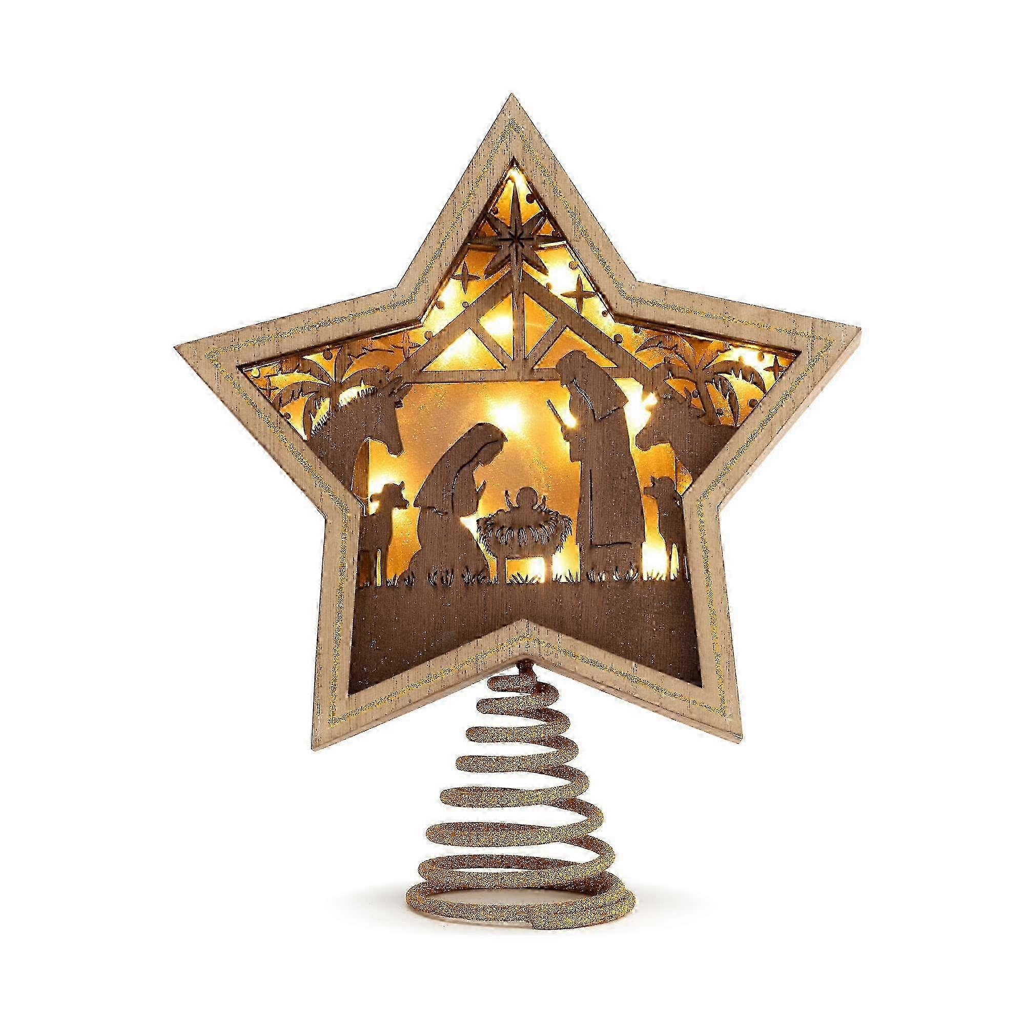Gold Wooden Christmas Tree Ornament, 10 x 8.5 inches