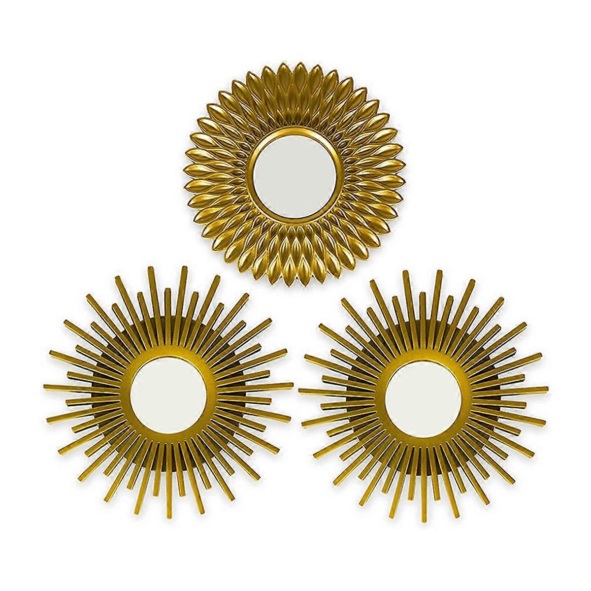PACK OF 3 The for wall decor come in of 3, allowing you to use each small round mirror to decorate several rooms if you wish, or put all on the same wall to give a unique and style. They are perfect wall decor for living room, bedroom, hallway, lounge and office These decorative gold measure 9.84x9.84x0.63 inch WALL-MOUNTED PLASTIC LIGHT Each of the three hanging has a small eyehole so they can be hung on a wall. The plastic frame is resilient and helps to protect the circle mirror so it is more durable VINTAGE DECORATION Give a shabby chic Press to your home with this circle vintage mirror set. In addition, they also combine with other decoration styles such as Scandinavian, Boho, Minimalist or Classic. They are perfect as ornaments and home accessories for and for decorating anywhere ORIGINAL GIFT These are perfect as a because they come in a beautiful package that is perfect for being gifted. Original gifts for women on birthdays, Christmas, 's Day and for Mother's Day. your , grandmother, girlfriend or mom with this great gift Two different types of , two in the shape of sunrays with a more rounded finish. Each mirror includes a small eyebolt to easy to hang . Plastic frame, sturdy material. COLOR: Gold Material: PVC+lens Package Contents: 3 x Decorative mirror Only the above package content, other products are not included. Note: Light and different displays may cause the color of the item in the picture a little different from the real thing. The measurement allowed error is +/- 1-3cm.