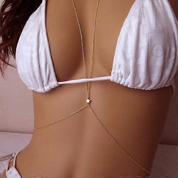 (Gold) 1 Star Body Chain Sling Bikini Body Jewelry Chain Belt for Women and Girls