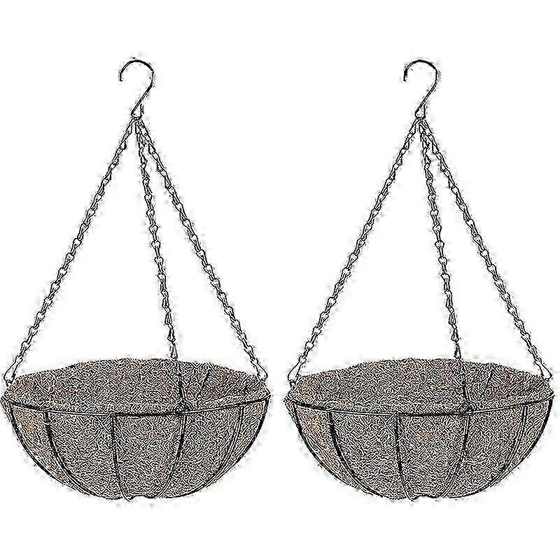 Metal Hanging Basket with Coir Liner Round Wire Plant Hanging Basket with Chain, Porch Decor Flower Pots
