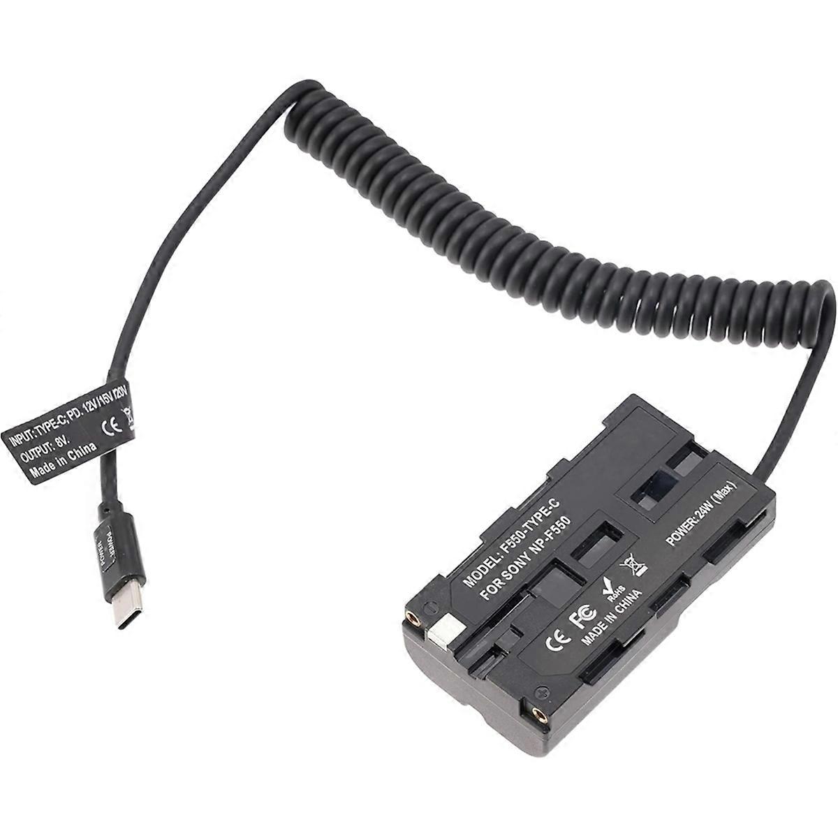 Coiled USB Type C Power Cable Cord to Decoded NP-F Dummy Battery for Power Shinobi Monitor Video C