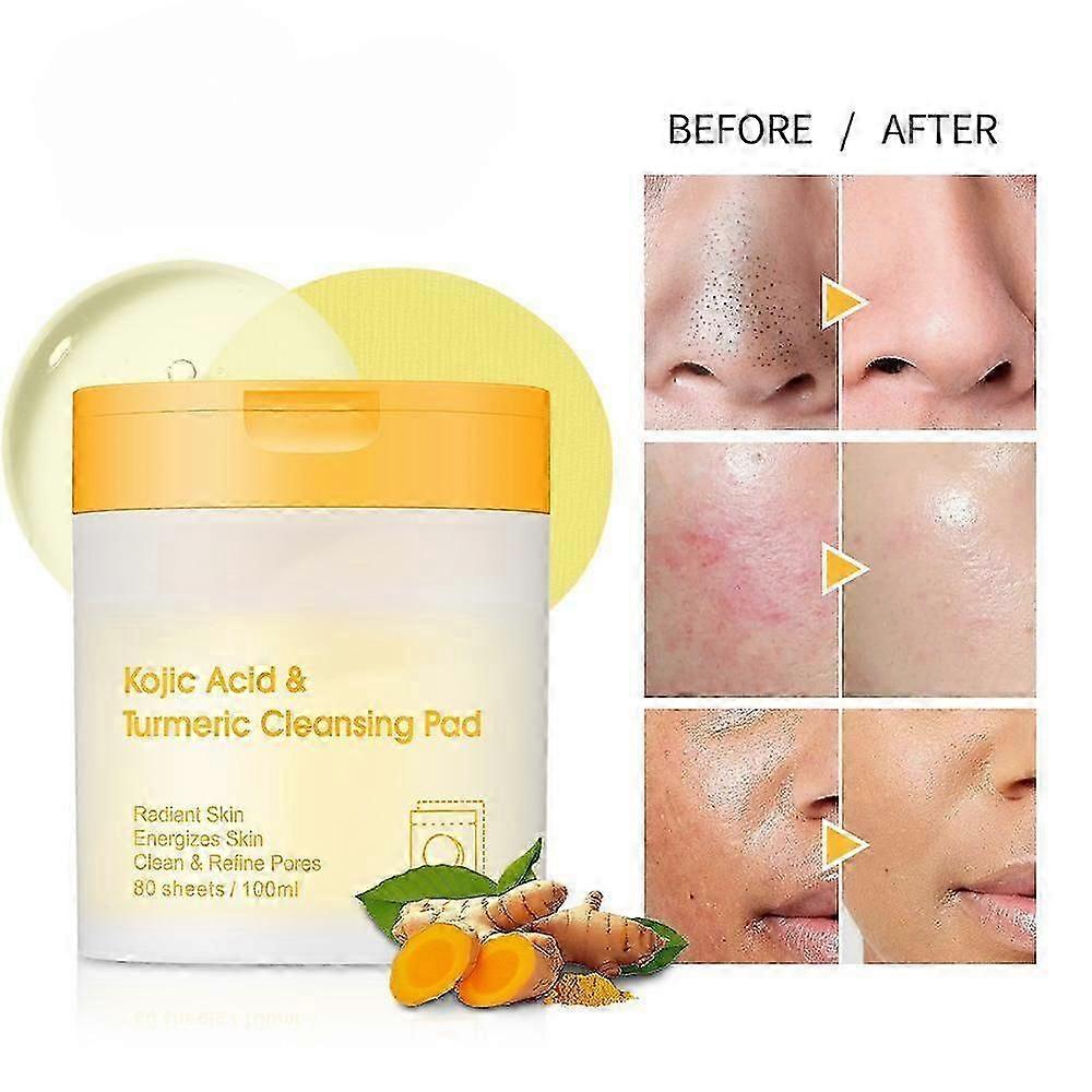 Kojic Acid and Turmeric Cleansing Pads, Turmeric Kojic Acid Lemon Chamomile Pads for Face and Body Cleansing and Exfoliation