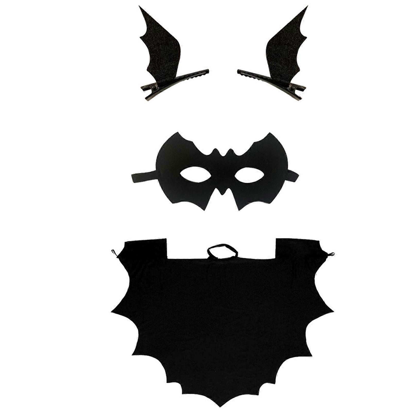 Kids Halloween Vampire Bat Costume with Bat Cape, Hair clips, Bat Eye Mask, Children Halloween Bat Cosplay Costume Set 140