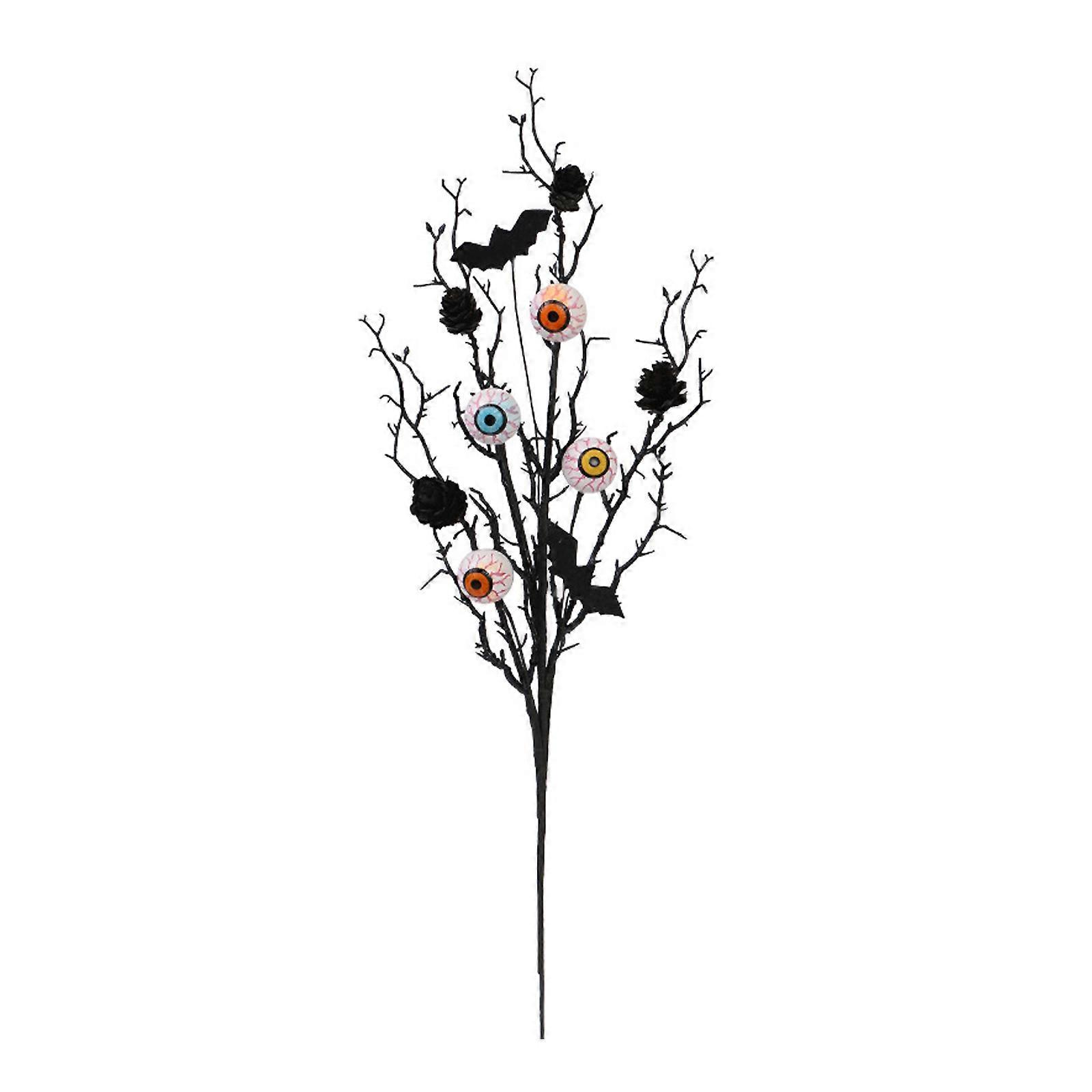 Artificial Plant Stem with Bat Eyeballs Realistic Leaf Pinecones Halloween Decoration for Home Vase Flower Arrangements Multicolor