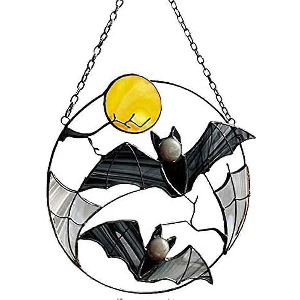 Bat Decoration Gothic Window Hangings Suncatcher Flying Under the Moon Crafts Suncatcher Wall Decor Halloween Decoration