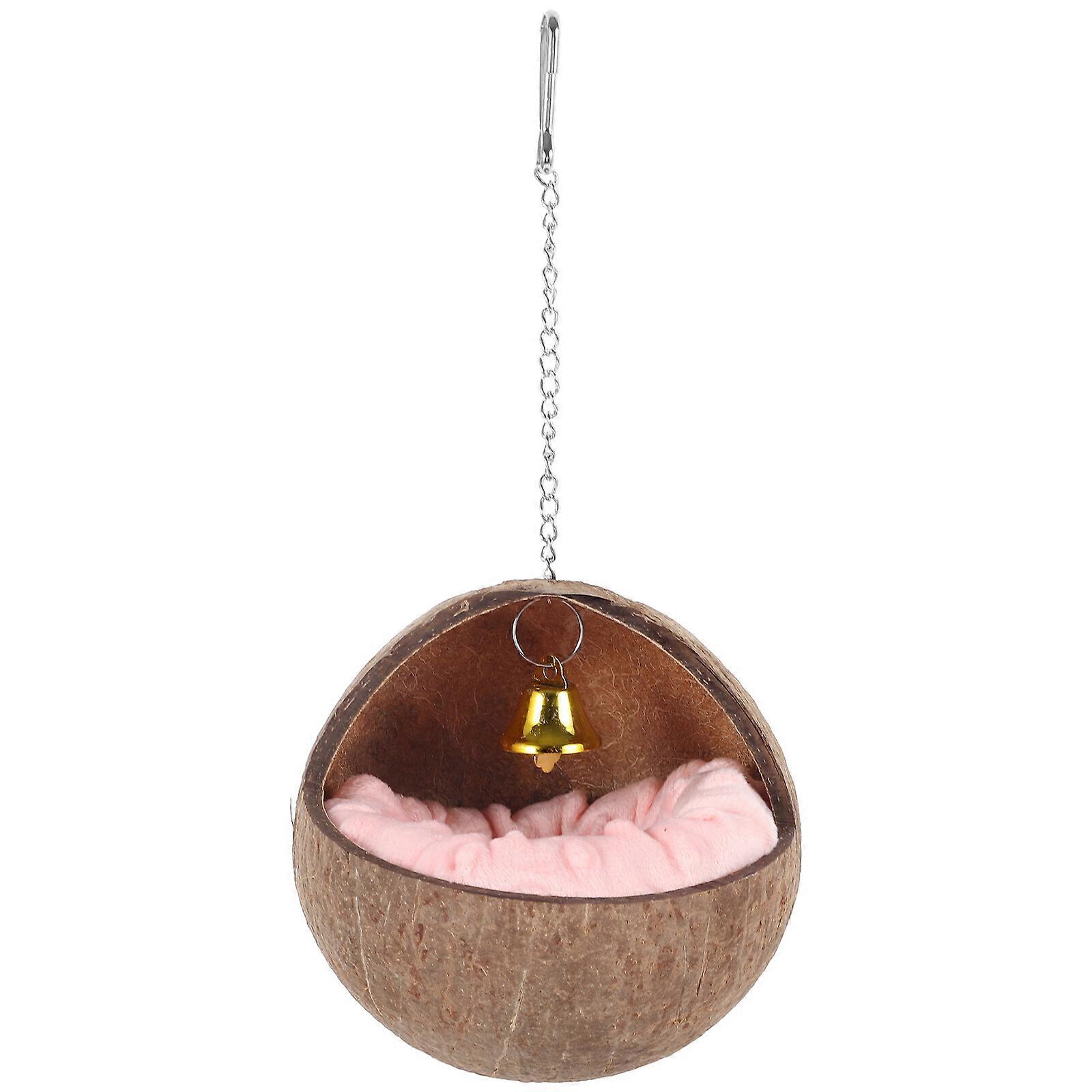 Coconuts Shell Nest Bird Nest Natural Coconuts Shell Bird Nests House Bed with Warm Pad and Bell