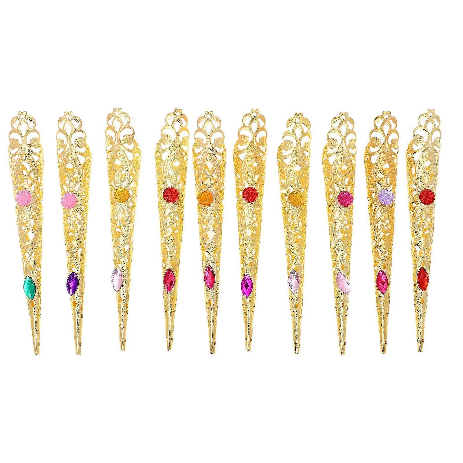Golden Alloy Nail Rings with Rhinestones for Costume Accessories 10 Pcs Fits Long Fingernails