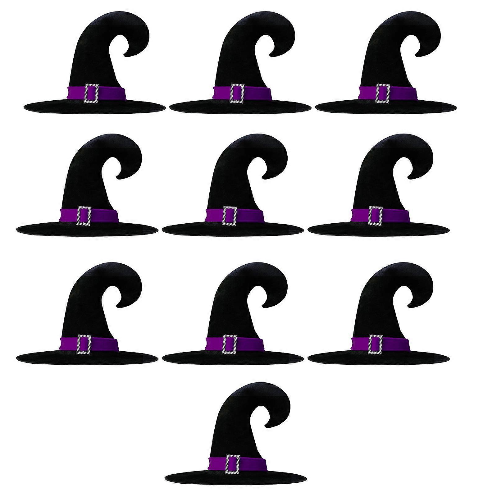 Pack Of 10 Halloween Witch Hat for Costume Parties Soft Velvets Wizard Caps for Adults and Teens Cosplay Accessories Purple