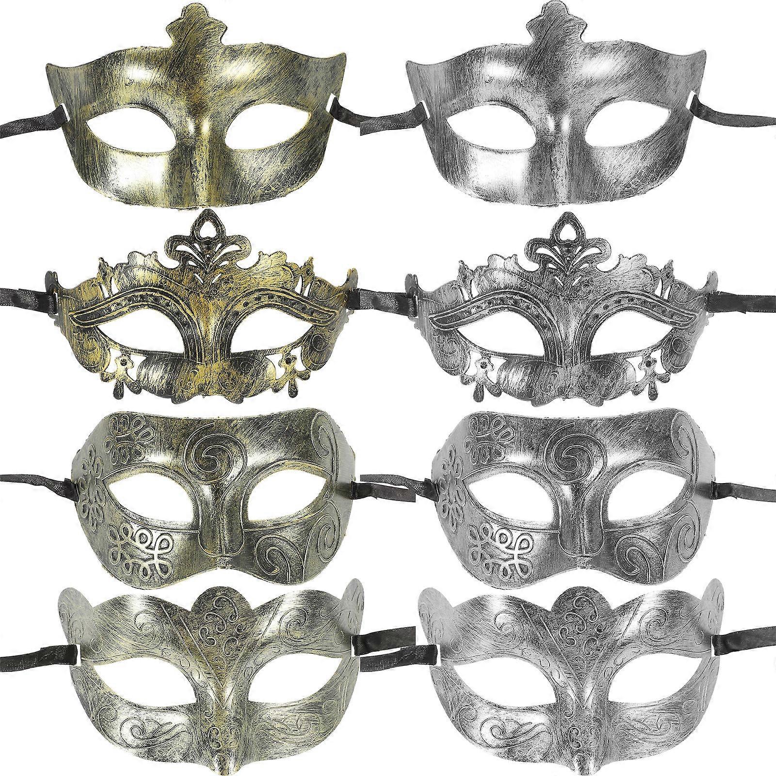 Costume Masks Masquerade Mask Masquerade Party Silver Plastic Material 8Pcs