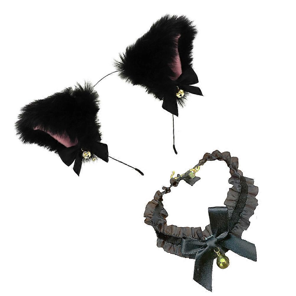Black Cat Ear Hairband Choker Decor for Cosplay and Halloween Events Fashionable Plush Cloth