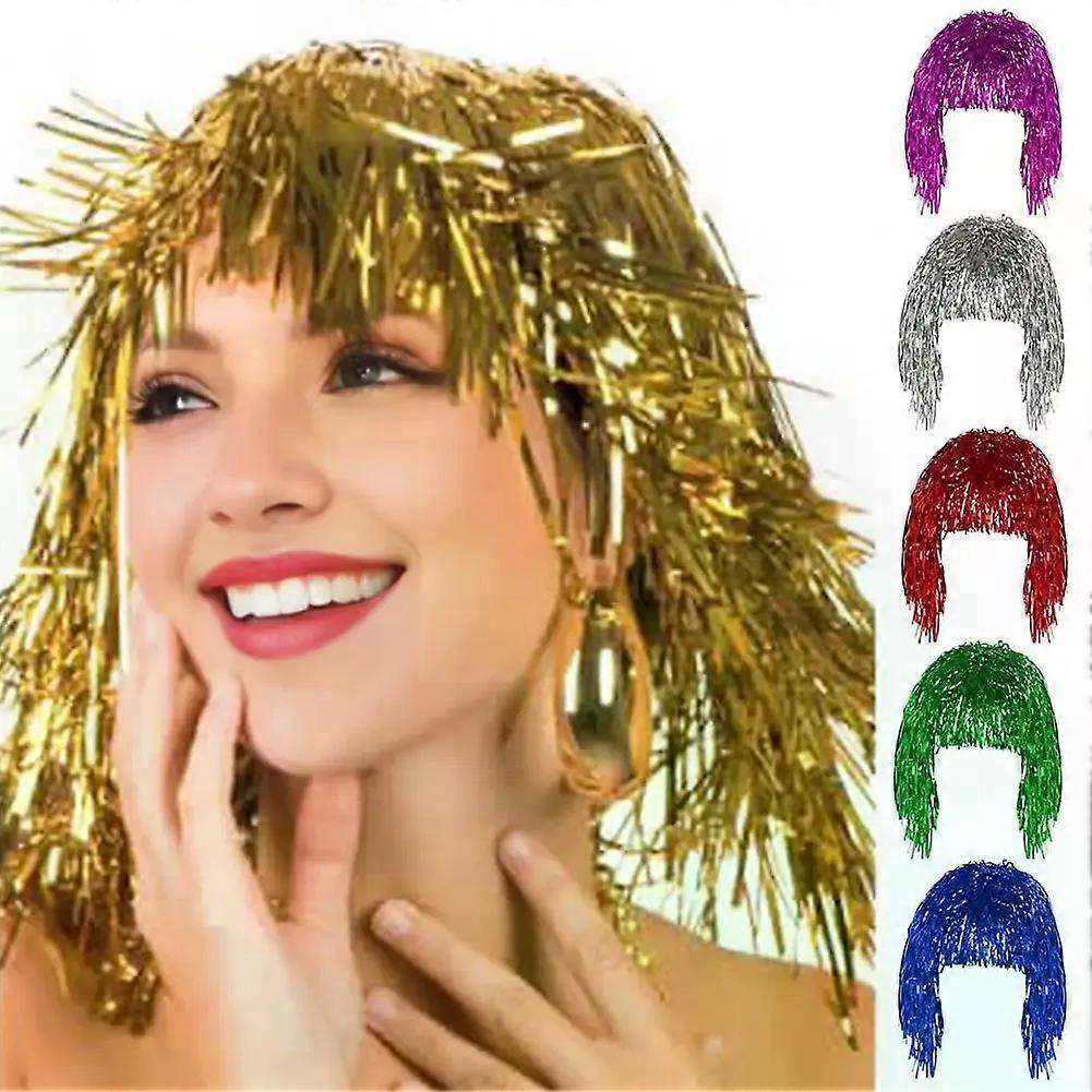 Cosplay Disco Wig Foil Tinsel Shiny Party Hat Adults Metallic Cosplay Supplies Funny Atmosphere Festive Decoration