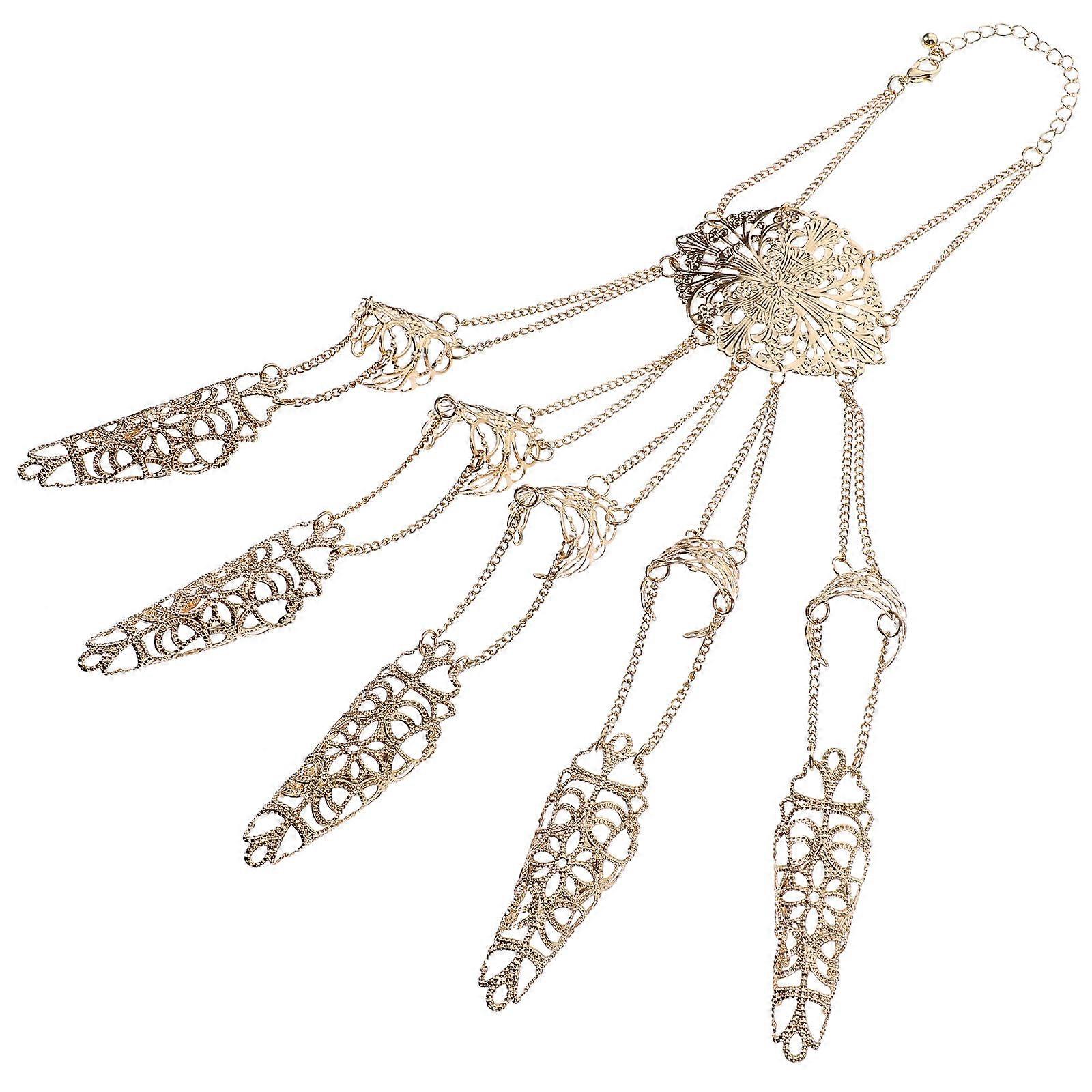 Are you still looking for decorative fingernail tip claw hand chain for belly dance decor? The punk fingernail tip claw bracelet could surely satisfy your demands. The delicate color, design is eye-catching, could make you become more attractive among the crowd, suitable for wearing on dance performance. Features -Color:Golden -Material:Metal -Size:26.00X13.00X1.00cm/10.22X5.11X0.39in - Punk hand chain bracelet is made of metal materials, gentle touching feeling, could be used for long time. - Wide applications, could be wonderful hand chain bracelet to wear for stage performance, belly dance. - Easy to wear, light weight, suitable for women, girl, you could have comfortable wearing feeling. - Attractive and delicate, featured by color design, gain others' attention better, could add and show your beauty. - Wonderful hand jewelry present to your women family or friends on different occasions such as birthday, New Year, Thanksgiving. Package list: 1 x fingernail tip claw bracelet