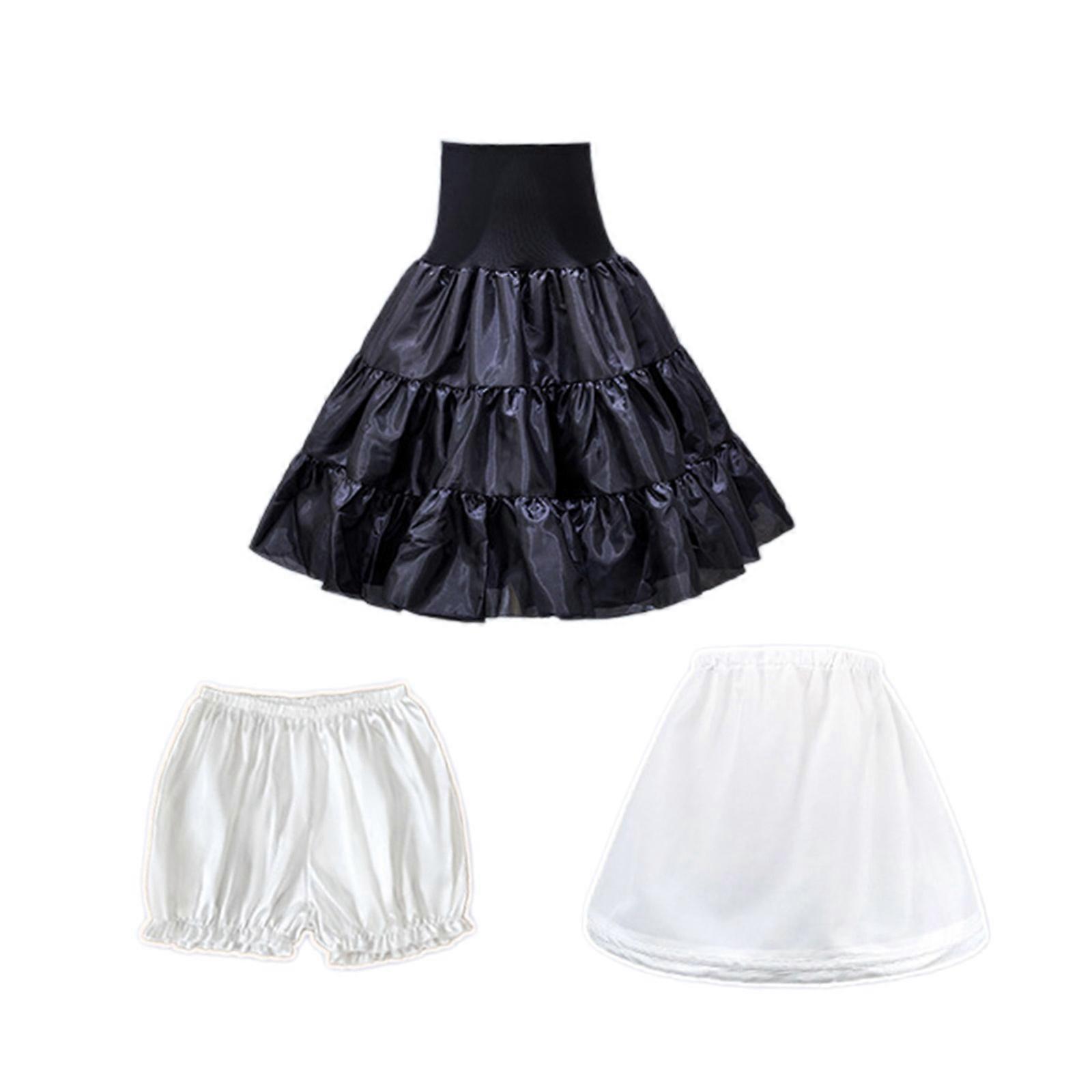 Cosplay Fish-bone Short Skirt Lolita-Slip Liner Cute Star-Girls Skirts Adjustable Wedding Dress Underskirt Petticoat Satin 60 Black Plus