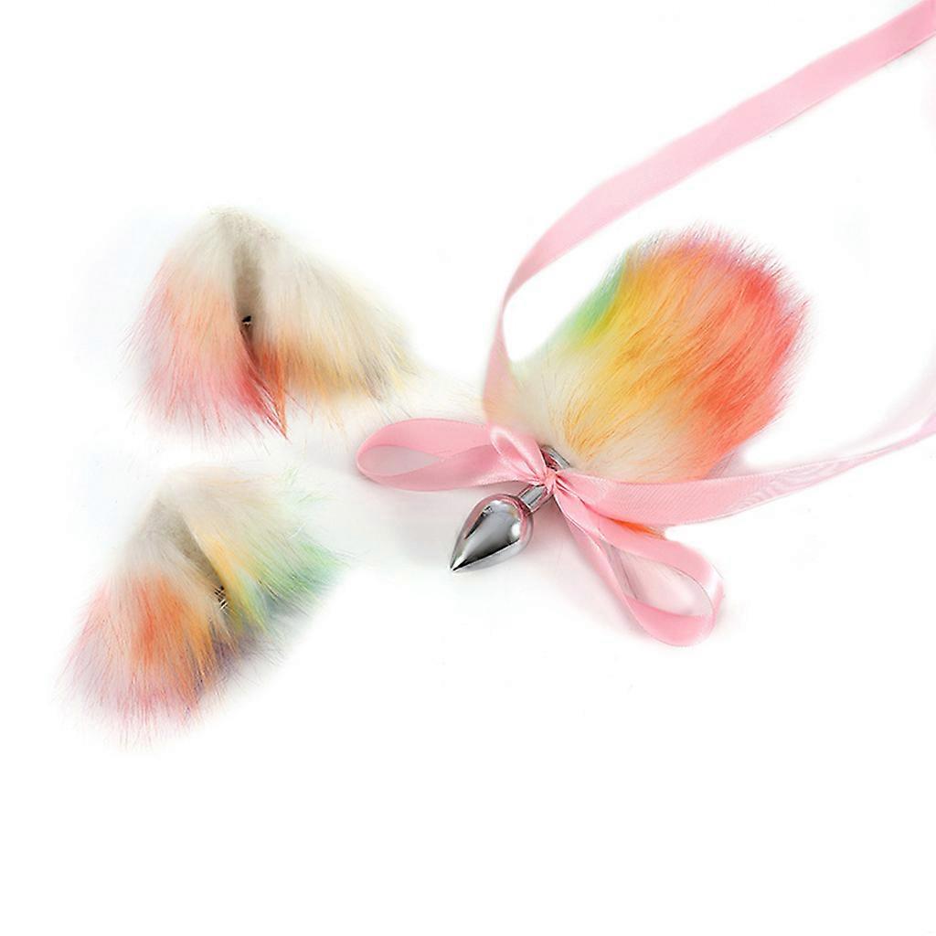Cosplay Furry Animal Ears Hairpin Tail Set Dress Up Costume Long Fur Headpiece for Adult Halloween Party Decoration