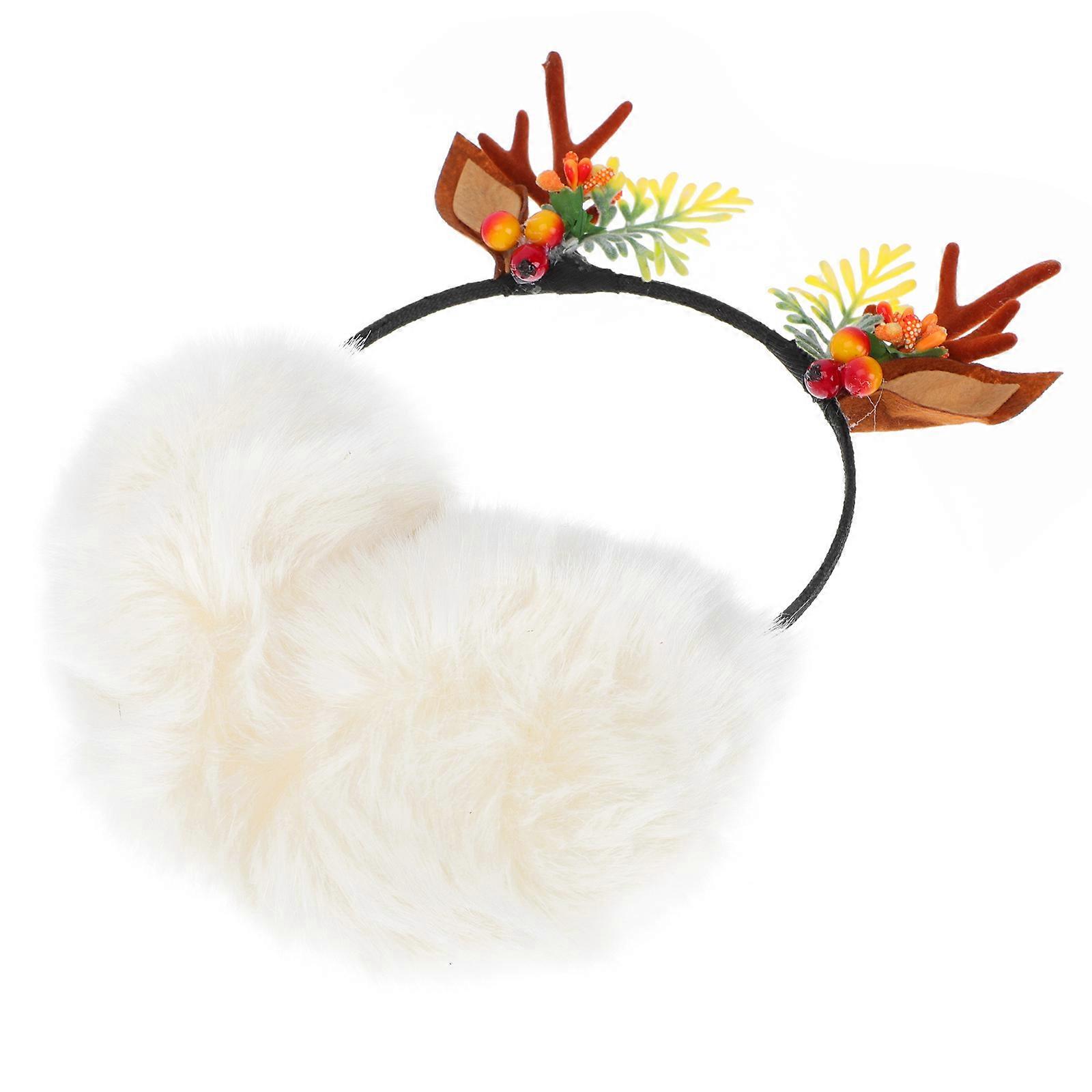 Cosplay Deer Costume Antlers Earmuffs Winter Christmas Ear Protection Beige 1Pack
