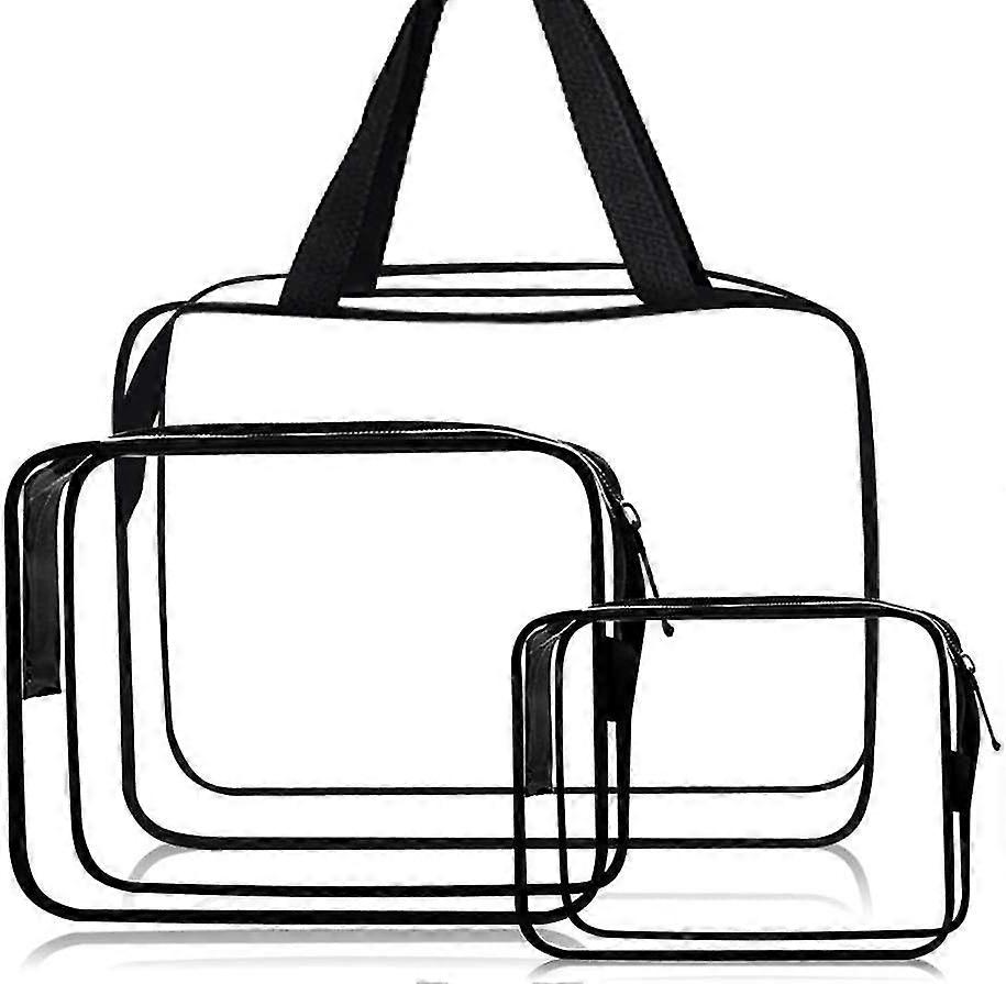 Cosmetic Bag 3 Pack Clear Travel Toiletry Bag Set With Zipper Make-up Pouch Handle Straps | Waterproof Packing Organizer Storage Diaper Pencil Bags (b