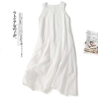 Cotton and linen dress with women's braces, dual -cane sleeveless retro dressed