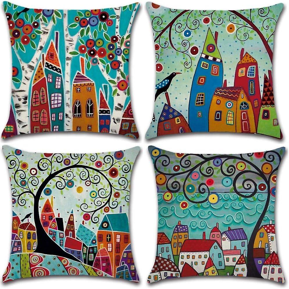 Cotton cushion covers Hand drawing pattern 4 pieces