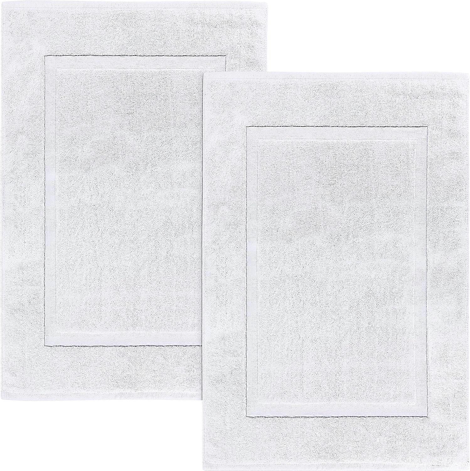 Set of 2 Cotton Bath Mats - Bathroom Rugs - Machine Washable (50 x 80 cm) (White)