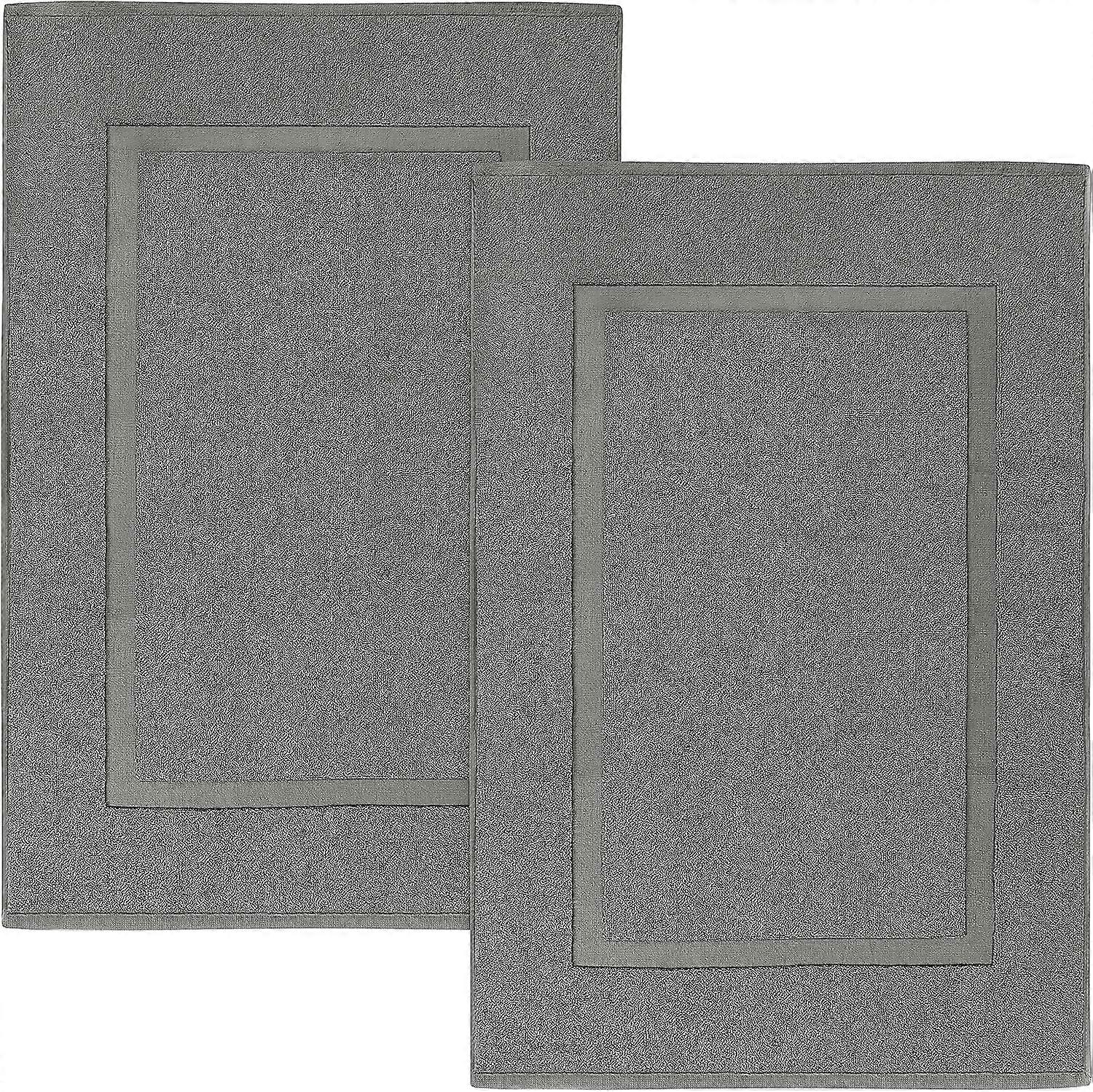 Set of 2 Cotton Bath Mats - Bathroom Rugs - Machine Washable (50 x 80 cm) (Grey)